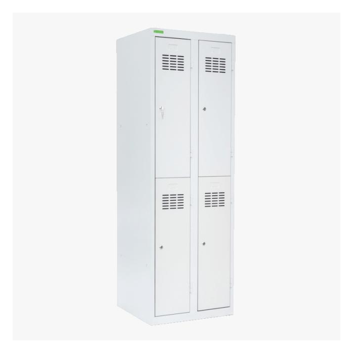 4-dverová šatňová skriňa s krátkymi dvierkami sa hodí do šatne v škole, firme či športovom zariadení. Konštrukcia skrine je zváraná z kvalitného oceľového plechu 1. triedy s povrchovou úpravou.