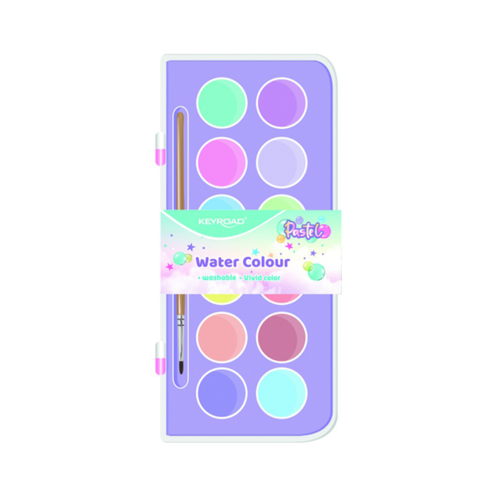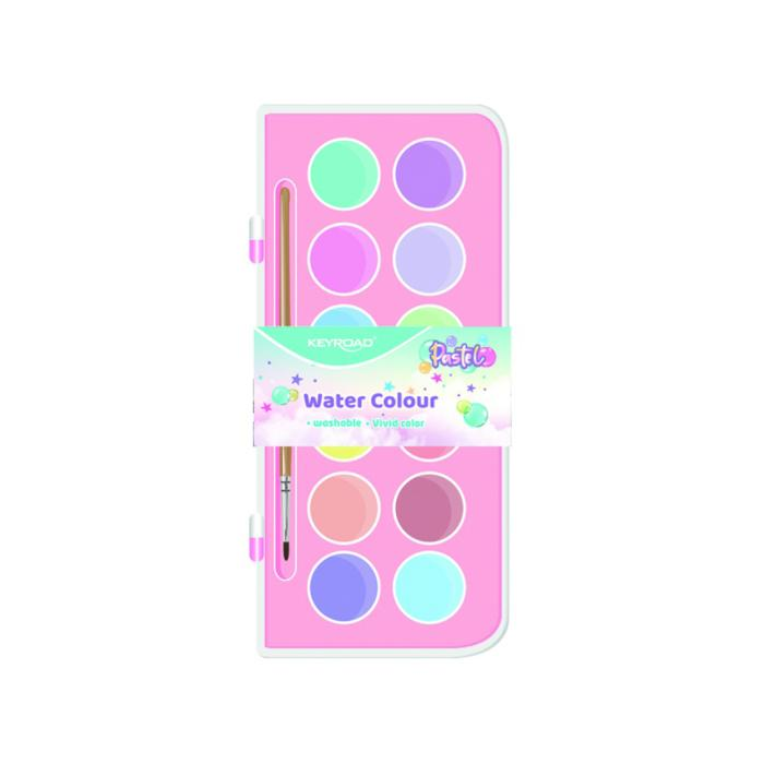 Akvarelové farby so štetcom KEYROAD, 12 ks, mix pastelových farieb