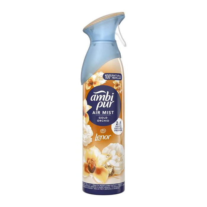 Osviežovač vzduchu v spreji Ambi Pur Gold Orchid s technológiou Odourclear odstraňuje zápachy a zanecháva sviežu a jemnú vôňu exotických kvetov. Vôňa Gold Orchid je inšpirovaná jedinečnou zmesou exotických kvetov, medzi ktorými dominuje orchidea. Sprejový osviežovač vytvára jemnú hmlu so 100% prírodnou hnacou látkou a je nehorľavý. Vďaka tomu sa skvele hodí do každej miestnosti v domácnosti. Vytvárajte výnimočnú atmosféru vo svojom domove s osviežovačom vzduchu od Ambi Pur.