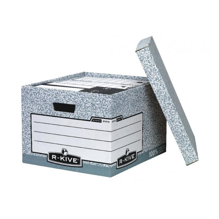 Veľká archívna krabica s odnímateľným vekom a bočnými výrezmi na uchytenie. Vhodná aj na archívne boxy. Steny spevnené zdvojenou vrstvou kartónu. Nosnosť 35,2 kg. Možnosť navyšovania do troch úrovní. Dodávaná v rozloženom stave naplocho. Väčšie balenie 20 ks. Farba sivá/-biela. Rozmery v cm: 38x28,7x43 Farba: sivá/biela