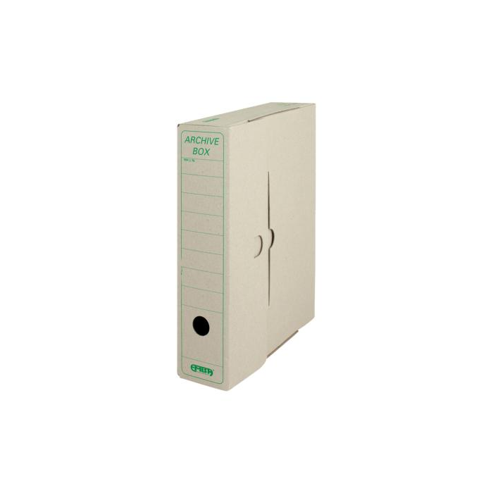 Ekologický výrobok. Box z recyklovateľnej špeciálne impregnovanej lepenky odolnej voči atmosferickej vlhkosti na dlhodobé uloženie záznamov. Tri varianty postavenia, kvalitná sieťotlač. Vhodný v kombinácii so skupinovým boxom. Väčšie balenie 25 ks. Rozmery (š x v x d) 75 x 330 x 260 mm.