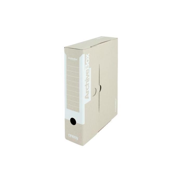 Systém archívnych boxov a škatúľ z vlnitej lepenky. Dodávané v rozloženom stave. Farba prírodná hnedá. Archívny box z hladkej ručnej lepenky, 1 000 g/ m². Konštrukčné riešenie boxu umožňuje rýchly prístup k vloženým dokumentom. Rozmery 75 × 330 × 260 mm. Väčšie balenie 25 ks. Farba biela.