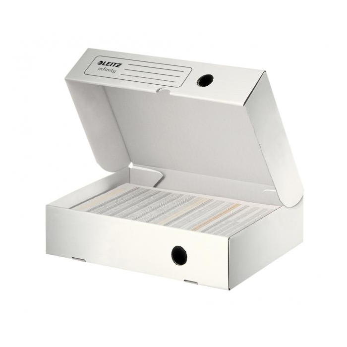 Špeciálny archivačný systém Leitz Infinity splňuje všetky kritériá a požiadavky medzinárodnej normy ISO 16245 pre dlhodobú a náročnú archiváciu dokumentov. Je vyrobený z novo vyvinutej lepenky, ktorá je 100% acid free (alkalická).