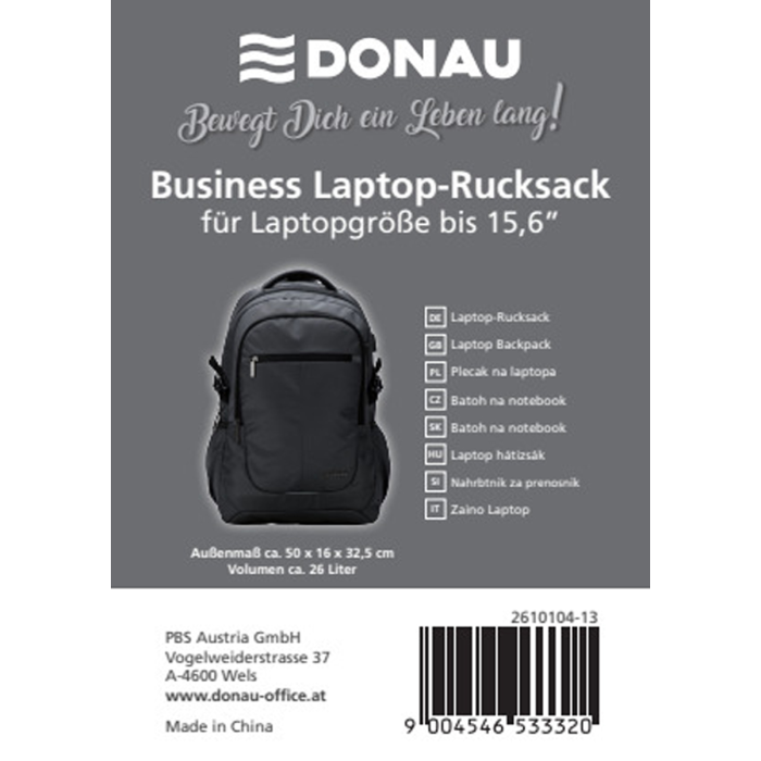Batoh na notebook v biznis farbe je vyrobený z vodeodolnej látky a má tri polstrované, samostatné vnútorné priehradky so sivými, vnútorne všitými zipsami. Pre notebooky do 15,6 palcov a má špeciálne polstrované puzdro na notebook s poistným popruhom. Je vyrobený z vodeodolného RPET materiálu a ponúka optimálnu ochranu pre elektronické zariadenia a osobné veci. Polstrované ramenné popruhy, rukoväť na prenášanie a vetraný chrbtový systém zaisťujú pohodlie. S rozmermi 50 x 16 x 32,5 cm a objemom približne 26 litrov je tento batoh na notebook DONAU ideálnou voľbou pre štýlových obchodných profesionálov, ktorí si cenia organizáciu aj ochranu.
