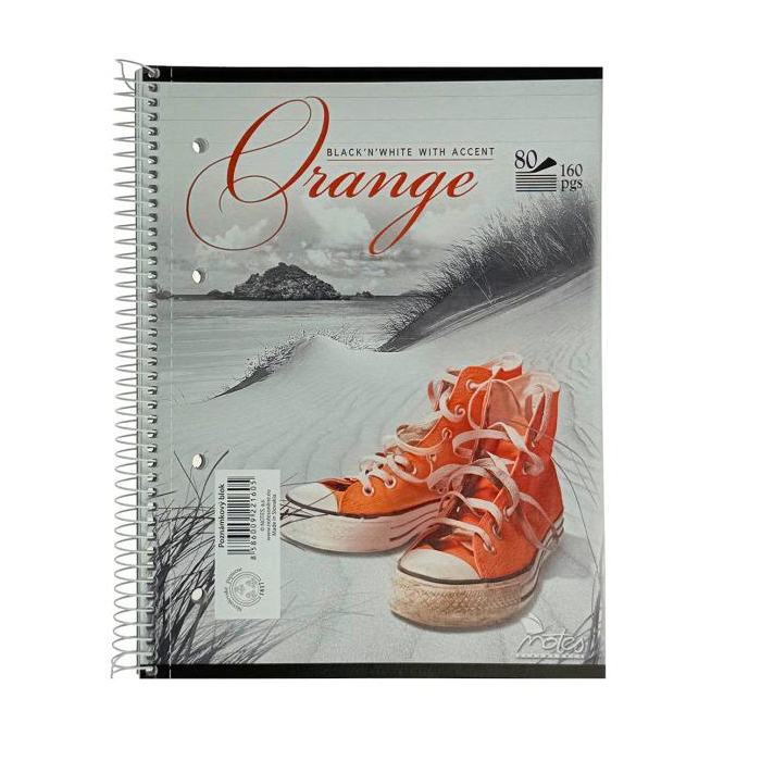 Bloky linajkové s kovovou špirálou po dlhšej strane, a otvormi pre zakladanie do šanónov, perforované, vyrobené z bezdrevného papiera, 80-listové. Formát A5. Väčšie balenie 10 ks. Bez možnosti výberu motívu.