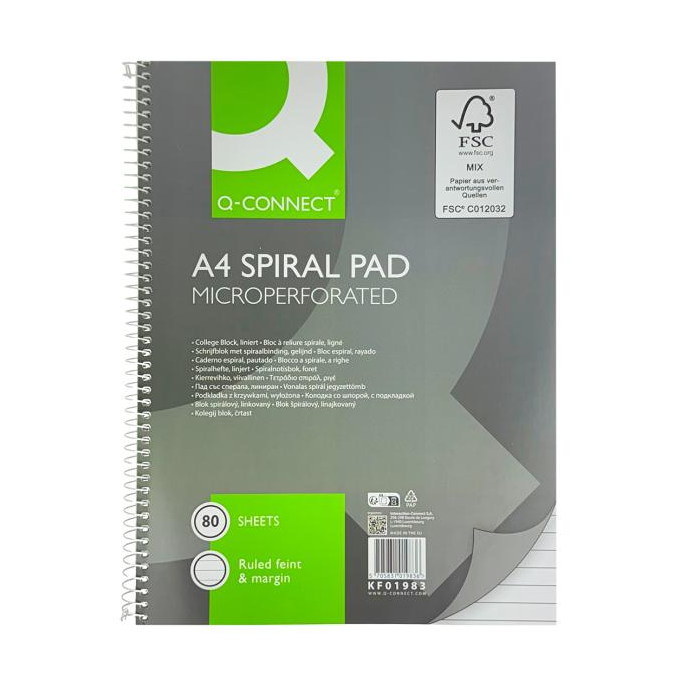 Blok College Q-Connect s kovovou špirálou formátu A4 s 80 listami, so špirálou na boku v atraktívnom vyhotovení. Väčšie balenie 10 ks.