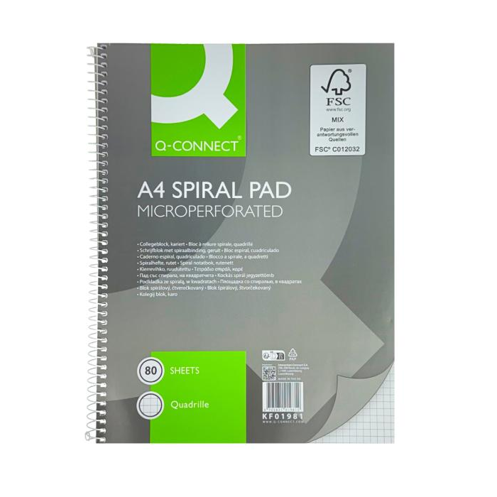 Blok College Q-Connect s kovovou špirálou formátu A4 s 80 listami, so špirálou na boku v atraktívnom vyhotovení. Väčšie balenie 10 ks.