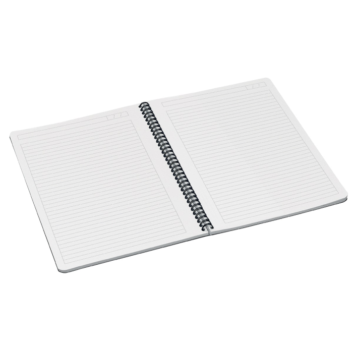 Špičkový zápisník na každodenné používanie. Každý zápisník má 90 listov papiera najvyššej kvality s gramážou 80 g/m2, drôtená väzba umožňuje 360-stupňové otváranie, laminované kartónové dosky.