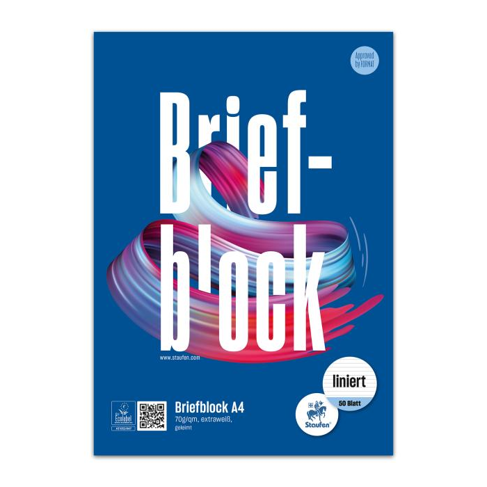 Poznámkový blok A4 s gramážou papiera 70 g/ m². Listy sa dajú ľahko odstrániť vďaka lepidlu.