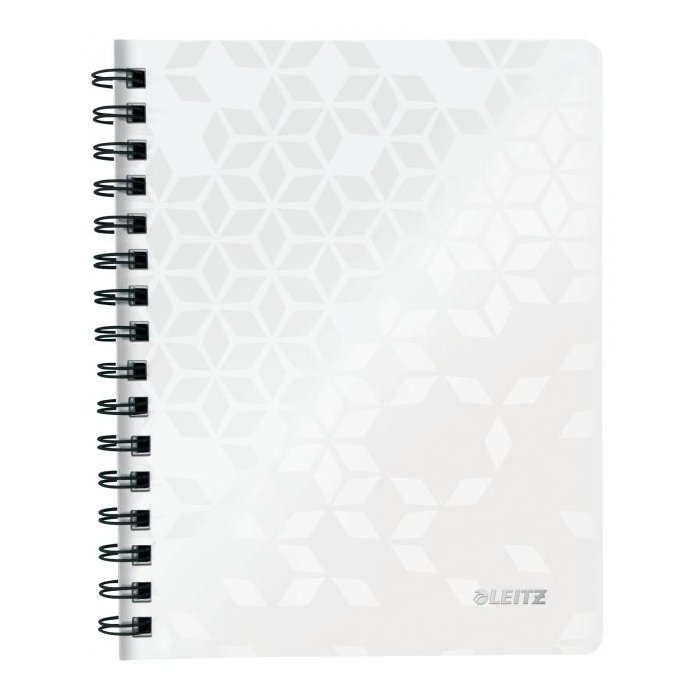 Krúžkový blok z dizajnovej rady Leitz WOW formátu A5 v žiarivých farbách. Vo vnútri biely papier s hmotnosťou 80 g / m2 s FSC® certifikáciou. Stránky sú perforované pre ľahšie odtrhávanie jednotlivých listov. Dvojitá drôtená krúžková väzba uľahčuje pretáčanie listov a zaisťuje dlhú životnosť bloku. Blok s pružnými doskami z polypropylénu obsahuje odnímateľné pravítko a vnútorné vrecko na uloženie voľných papierov, Väčšie balenie 6 ks. Farba biela.