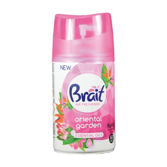 Náhradná náplň do automatického osviežovača vzduchu značky Brait Oriental garden s vôňou pripomínajúcou atmosféru Orientu.