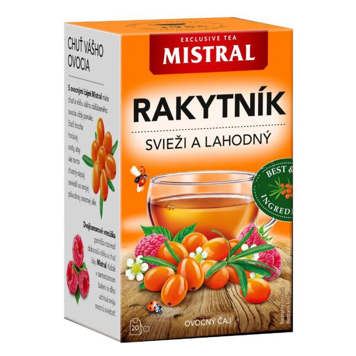 Mistral - Aromatizovaný ovocný čaj s Rakytníkom v nálevových vreckách.