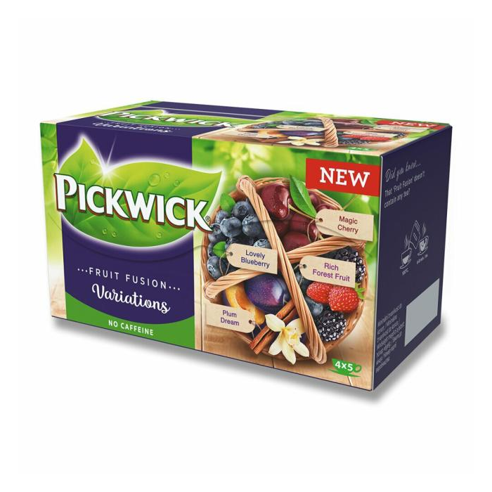 Užite si pestrú paletu ovocných chutí s kolekciou Pickwick Fruit Fusion Variations. Balenie obsahuje štyri lahodné príchute, ktoré vás osviežia v každej šálke. Vhodné na celodenné pitie - neobsahuje kofeín. 4 druhy čaju po 5 sáčkoch (celkom 20 sáčkov). Obsah 38,75 g (1 x 5 x 1,75 g, 3 x 5 x 2 g).