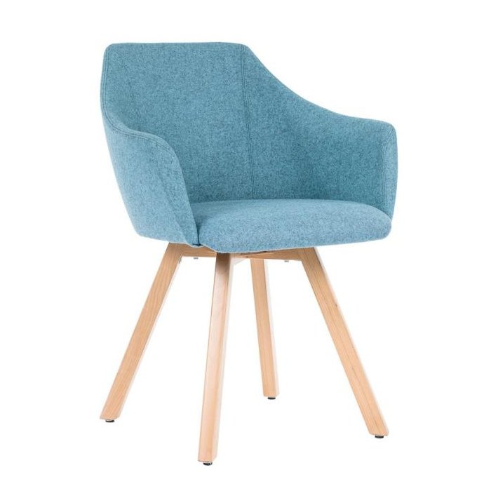Čalúnené kreslo Wind Wood, drevené nohy, látka VIS021 modrá