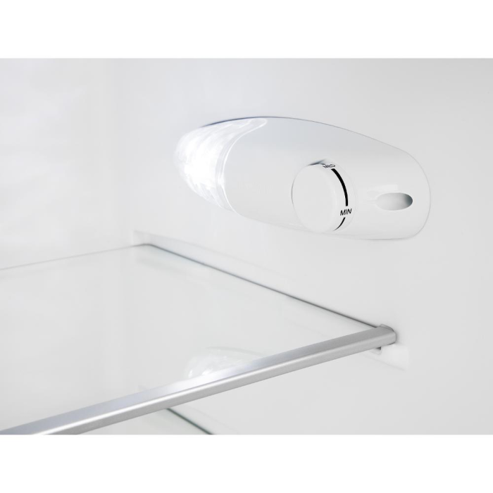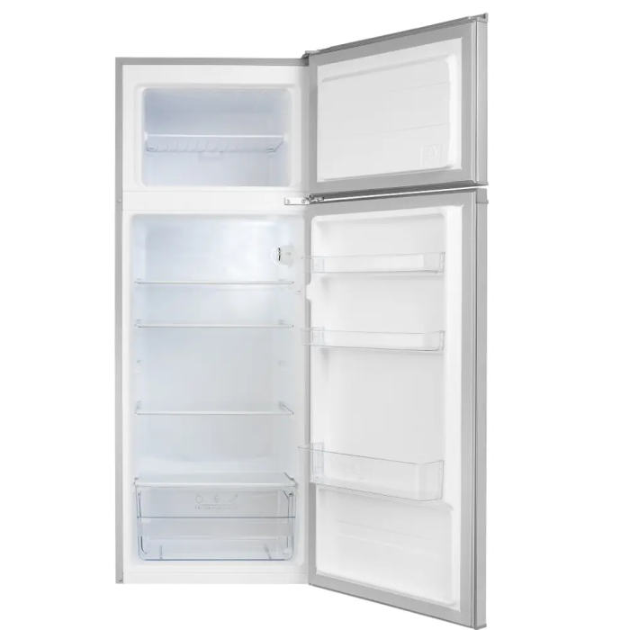 Dvojdverová kombinovaná chladnička Vlastnosti: Možnosť otočenia dverí Sklenené police s nastaviteľnou výškou 3 dverové poličky Priehradka na ovocie a zeleninu