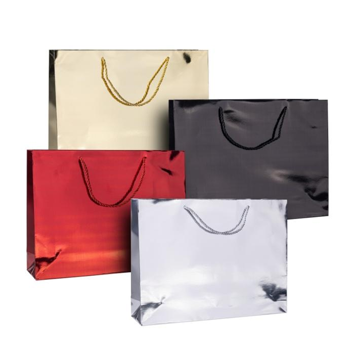 Darčeková taška DONAU HOME: - je perfektnou voľbou pre každú príležitosť - klasický, jednotný dizajn v metalických farbách ju robí vhodnou pre všetky druhy darčekov - od elegantných až po ležérnejšie - vďaka laminovanému povrchu sa vyznačuje väčšou odolnosťou voči poškodeniu a dlhodobo si zachováva elegantný vzhľad - vyrobená z 210 g/m² papiera - s presne vyrezanou rukoväťou pre pohodlné používanie - rozmery: 40 x 30 x 10 cm . farba: mix farieb