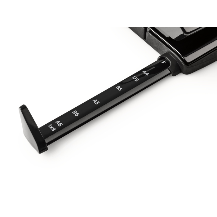Dierovačka s kovovou základňou pre profesionálne použitie z kolekcie šetrnej k životnému prostrediu re+new, s vrchnou časťou zo 64% recyklovaného plastu a posuvným pravítkom vo farbách a dizajne zhodnom so zošívačkou B 2 re+new. Rozpätie dier 8 cm, priemer dier 5,5 mm. Hmotnosť 350 g. Záruka 10 rokov. Kapacita dierovania 20 listov. Farba čierna.