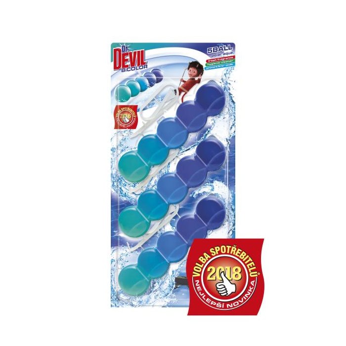 Dr. DEVIL WC závesný blok tuhý 5Ball 2in1 3x35g Polar Aqua
