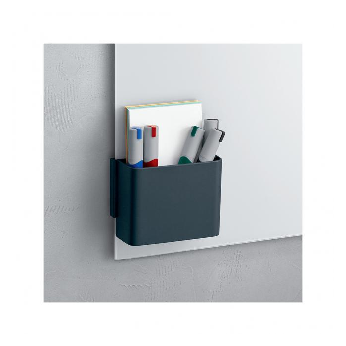 Držiak na popisovače vhodné k skleneným tabuliam hrúbky 3 až 5 mm s výnimkou podsvietených. Upevňuje sa zboku tabule pomocou magnetickej spony a ich polohu je možné podľa potreby meniť. Vyrobený z vysokokvalitného syntetického materiálu. Nosnosť 600 g. Farba čierna.