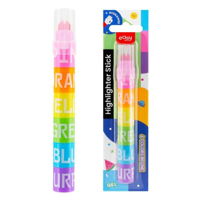 Už žiadne lovenie v penále! 6 farieb v 1 zvýrazňovači Easy! Predstavte si zvýrazňovač, ktorý sa premení podľa vašich potrieb. Tento inovatívny zvýrazňovač v sebe spája 6 žiarivých farieb v jednom kompaktnom tele.Zvýrazňovač Easy v ceruzke s ergonomickým tvarom padne perfektne do ruky a jeho zaoblený hrot zaručuje plynulé a precízne zvýrazňovanie bez rozmazávania. Šesť žiarivých farieb vám umožní kreatívne organizovať poznámky a prekladaný dizajn dodá vášmu štýlu šmrnc. Objavte revolúciu vo zvýrazňovaní! Vďaka dômyselnému stohovaciemu mechanizmu jednoducho zmeníte farbu jednoduchým prehodením farebných koncoviek a ušetríte tak miesto v penále. S týmto praktickým pomocníkom budete mať všetky potrebné farby vždy po ruke. A vďaka praktickému klipu na viečku ho môžete mať vždy po ruke pripevnite si ho k zošitu, peračníku alebo napríklad k batohu.