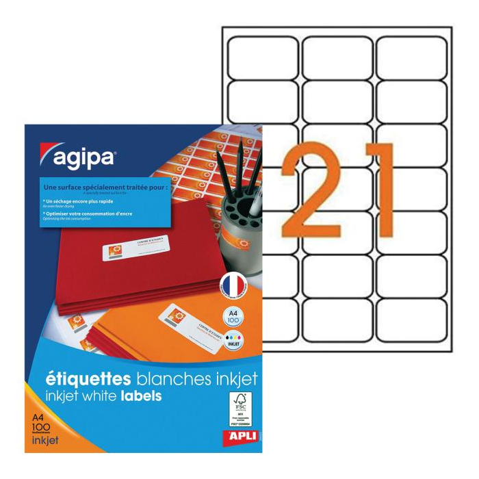 Etikety inkjet 63,5x38,1mm Agipa A4 100 hárkov