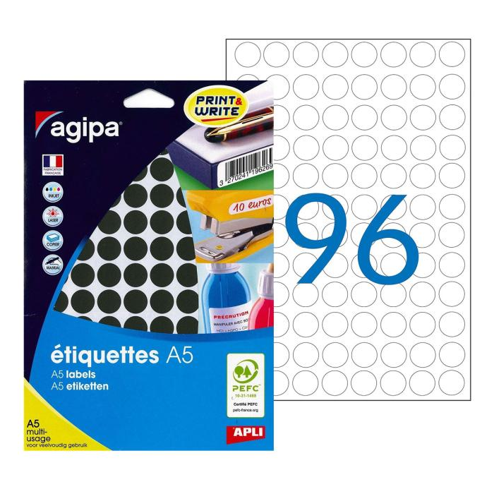 Etikety kruhové 15mm Agipa A5 čierne