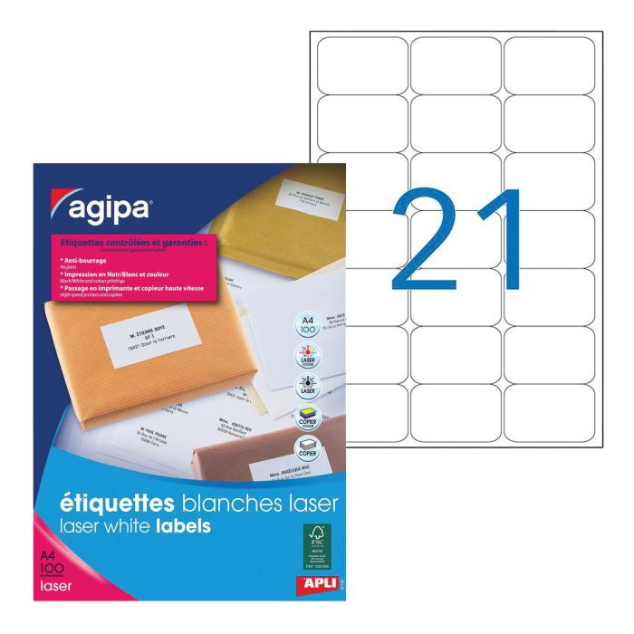 Etikety laser 63,5x38,1mm Agipa A4 100 hárkov