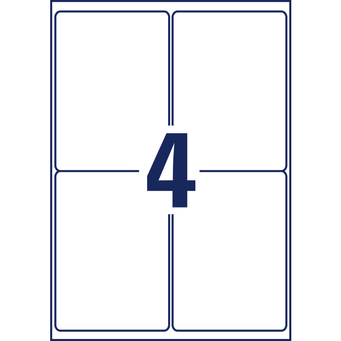 Rozmery v mm : 99,1 × 139. Farba biela. Etikety na hárku 4 kusov. Balenie 20 hárkov.