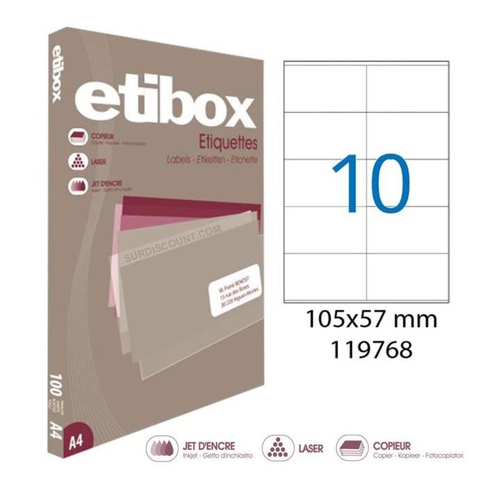 Etikety univerzálne 105x57mm Etibox A4 100 hárkov