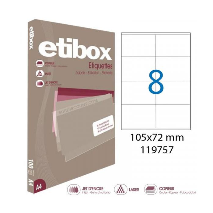 Etikety univerzálne 105x72mm Etibox A4 100 hárkov
