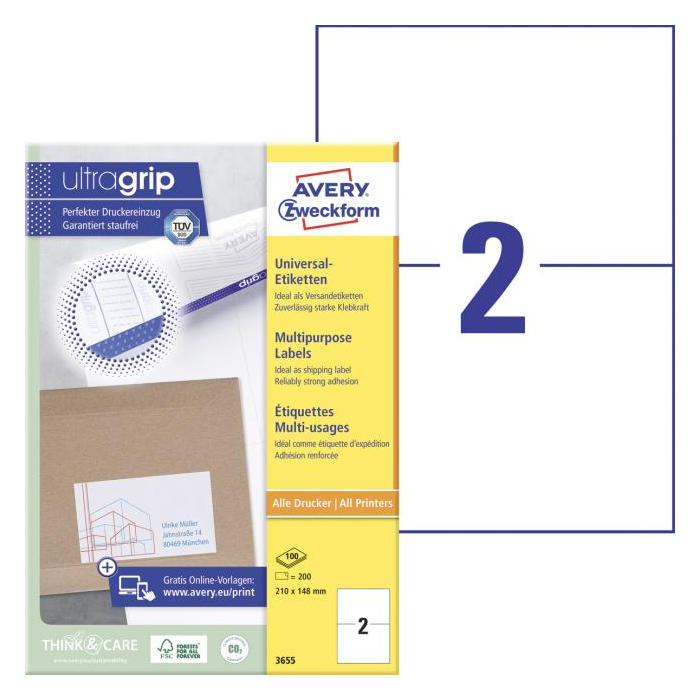 Biele univerzálne etikety vhodné na každodenné použitie v atramentových a laserových tlačiarňach a kopírovacích strojoch. Vďaka inovatívnej technológie ultragrip sa môžete spoľahnúť na bezchybné natiahnutie archu a tlač bez zasekávania. Bezpečnostný okraj QCT zabraňuje zanášaniu tlačiarne lepidlom. Pre laserové tlačiarne testované a certifi kované TÜV SÜD. Vysoká lepivosť na rôznych povrchoch. Ostrá tlač bez bez rozmazávania. Etikety sú vyrobené spôsobom šetrným k životnému prostrediu, majú certifi káciu FSC®, sú bielené bez použitia chlóru. Šablóny a softvér pre jednoduchú a rýchlu tlač etikiet k dispozícii zdarma. U niektorých rozmerov systém QuickPEEL™ na rýchlejšie odlepenie etikiet. Formát A4. Balenie 100 hárkov. Farba biela.