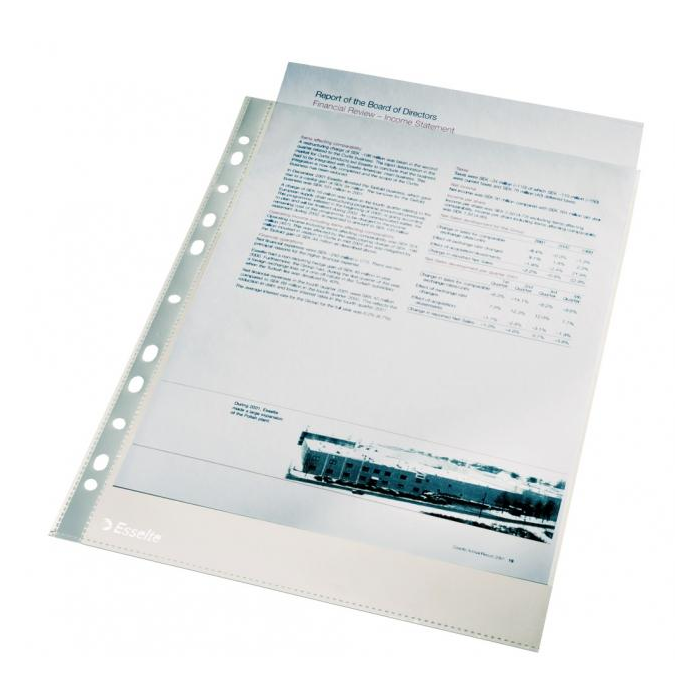Priehľadný číry euroobal z polypropylénu. Otvor zhora, eurodierovanie, povrch lesklý a hladký. Formát A4. Balené v kartónovej krabici.