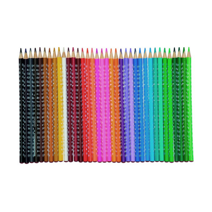 Trojuholníkové ceruzkové pastelky, ideálne na omaľovánky, mäkký grafit, ľahko sa ostria. V sade 36 farieb. Balenie: v krabici. Farba: mix farieb.