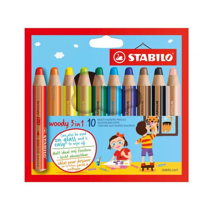 Krátka farebná ceruzka, vodovka a voskovka v jednom. Tuha veľkosti XXL s kapacitou ako 8 štandardných ceruziek. Nelámavá tuha hrúbky 10 mm s kvalitnými pigmentami. Vysoká krycia schopnosť a intenzita farieb i na tmavom papieri. Použiteľná i na hladké povrchy, ako napr. sklo. Dodávaná v sade 10 ks. Väčšie balenie 5 sád.