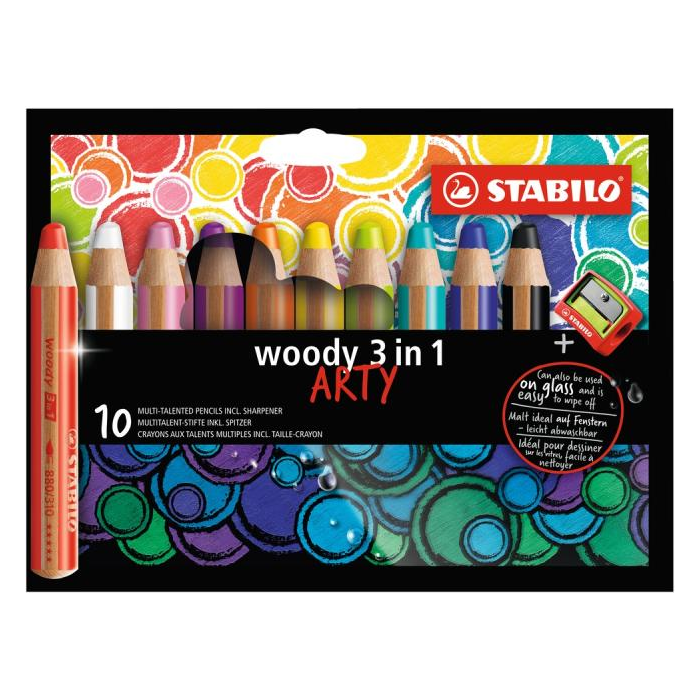 Farbičky STABILO woody 3 in1 10ks so strúhadlom ’ARTY’