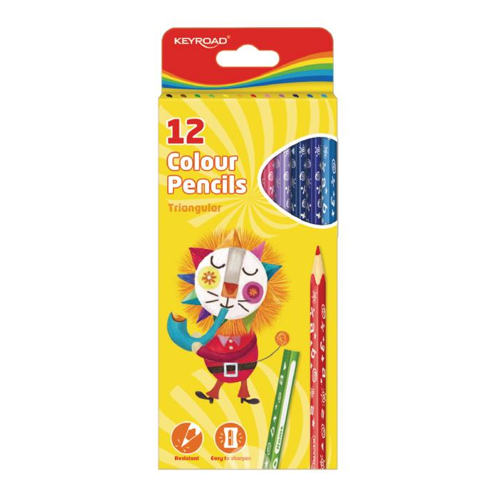 Trojhranné ceruzky ideálne pre omaľovánky z mäkkého grafitu, ľahko strúhateľné. 12 farieb. Farba: miešané farby.