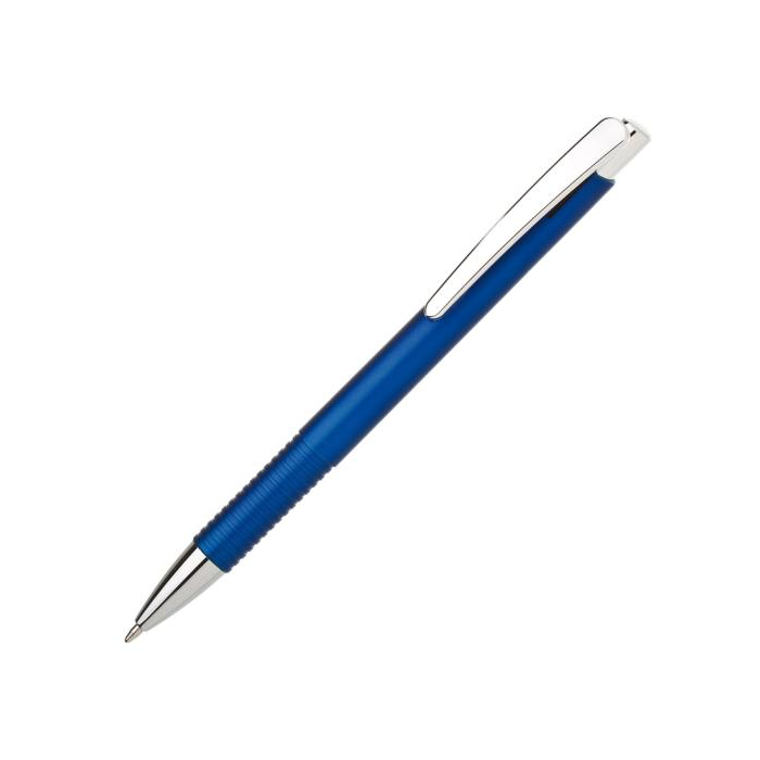 Guľôčkové pero plastové LASTI s vrúbkovaným úchopom a doplnkami v striebornej farbe. Modrá náplň X-20. Farba modrá.
