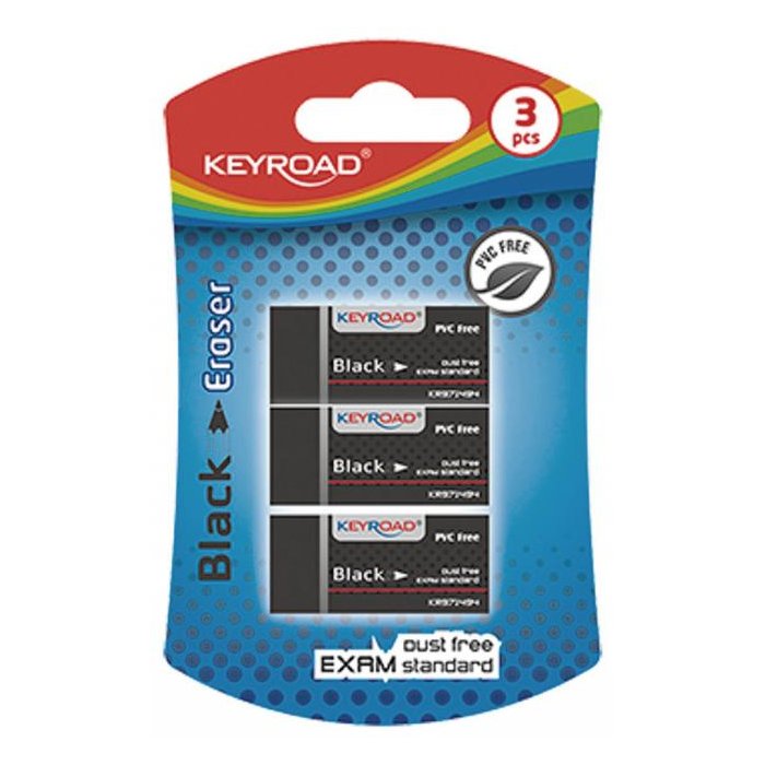 Guma KEYROAD Black, blister 3 ks, čierna