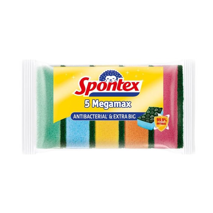 5 extra veľkých farebných hubiek s novým antibakteriálným webom na povrchu, účinné umývanie tanierov a hrncov. Rozmer: 3,4 x 10,3 x 7cm
