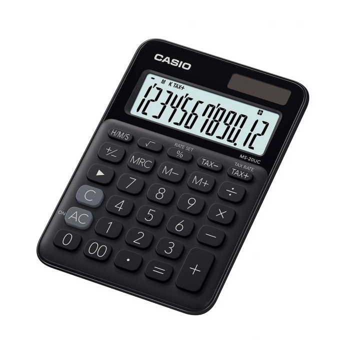 Stolová kalkulačka s veľkým 12-miestnym LCD displejom. Farba čierna.