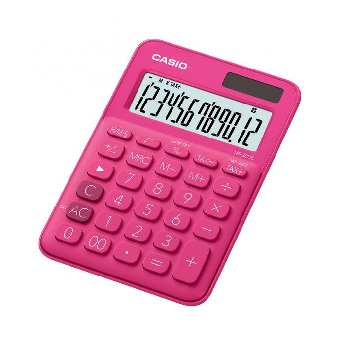 Stolová kalkulačka s veľkým 12-miestnym LCD displejom. Farba magenta.