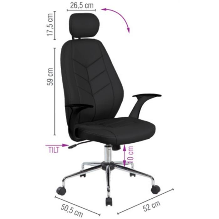 Ergonomické kancelárske kreslo s hojdacím mechanizmom v čierne ekokoži.