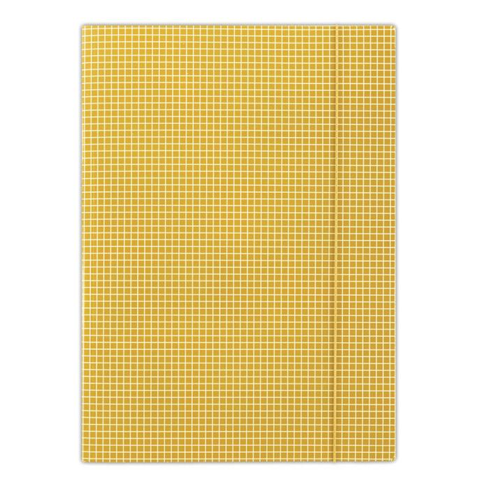 Kartonový obal vyrobený z lepenky s hmotnosťou 400g. Jednostranne potiahnutý vysoko lesklým tlačovým lakom, okrúhla vertikálna guma vo farbe obalu chráni obsah pred vykĺznutím. Károvaná potač. Formát: A4. Farba oranžová. Rozmery 232 x 317 mm.