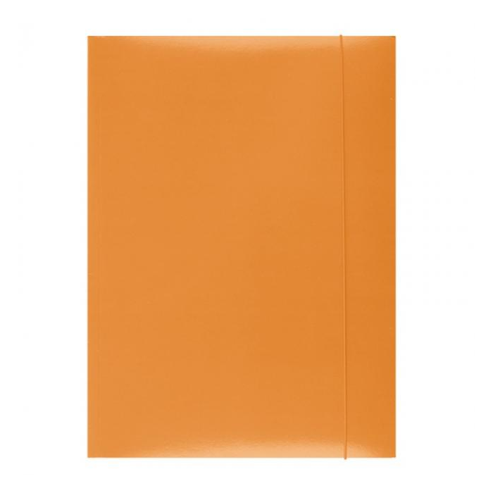 Obal s tromi chlopňami so zvislou gumičkou vo farbe obalu. Materiál 300g kartón. Rozmery 232 × 320 mm.