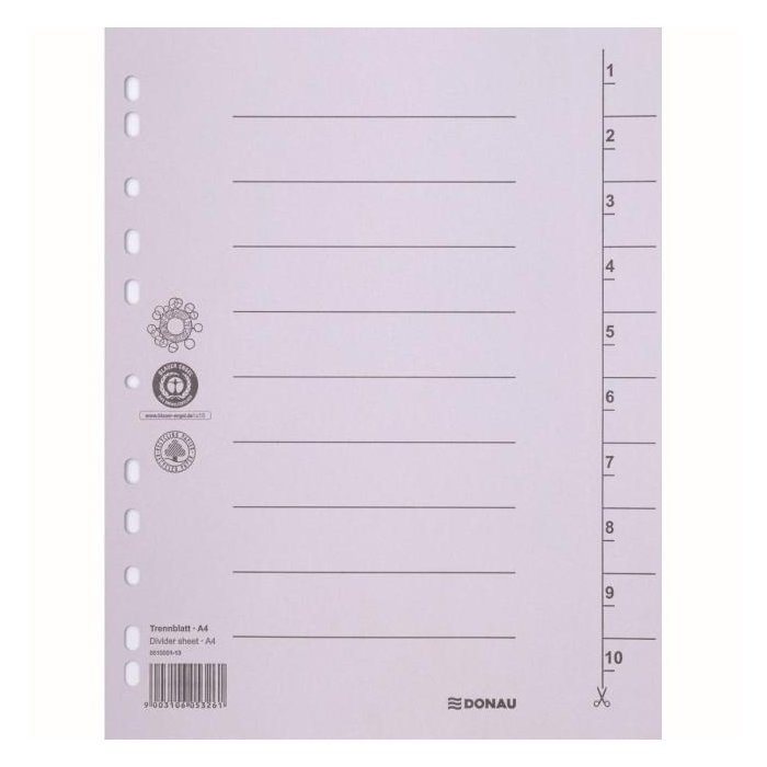 Kartónový rozraďovač DONAU 1-10 sivý