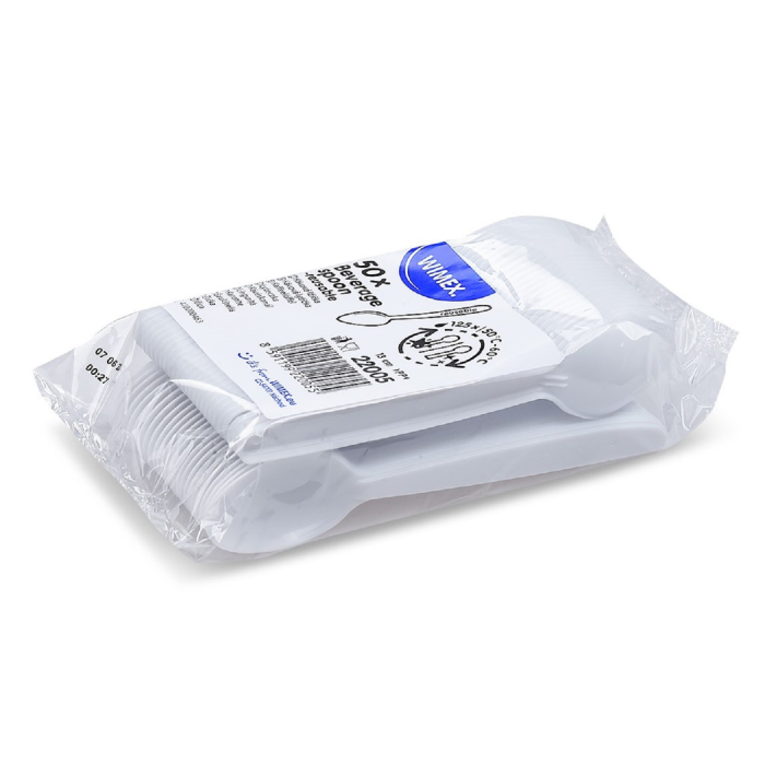 Kávove lyžičky plastové znovu použiteľné biele 13 cm (50 ks)