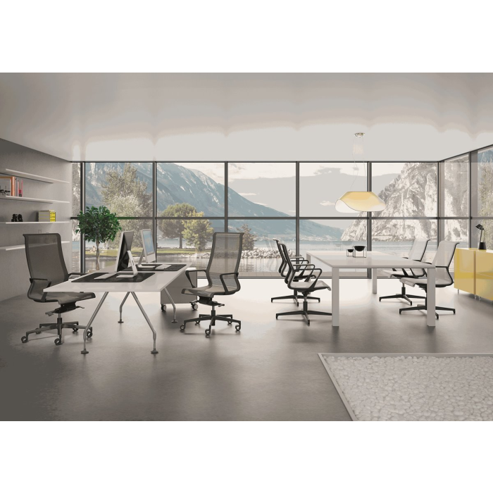 Konferenčná stolička so sieťovinou na sedáku a operadle pre moderné zasadacie miestnosti.