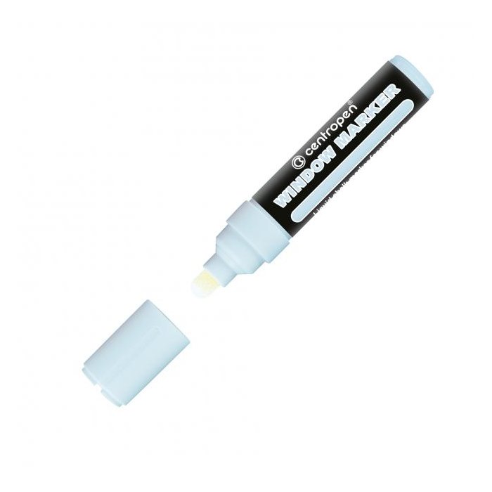 Špeciálny popisovač na neporézne povrchy (okná, zrkadlá, výklady). Tekutá krieda na vodnej báze so silnými krycími schopnosťami, svetlostála, stierateľná. Guľatý hrot, šírka stopy 3 - 4 mm. Väčšie balenie 5 ks v jednej farbe. Farba biela.