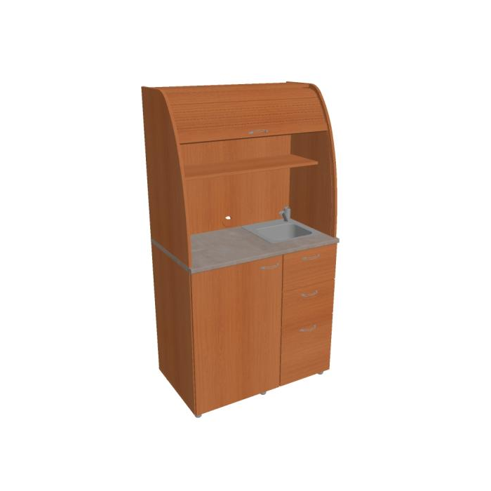 • Dve police vo vrchnej časti kuchynky poskytujú dostatočnú kapacitu na poháre, šálky a taniere. Na pracovnú dosku môžete umiestniť napr. kávovar a káblovou priechodkou v zadnej časti vyvediete kábel z priestoru kuchynky.