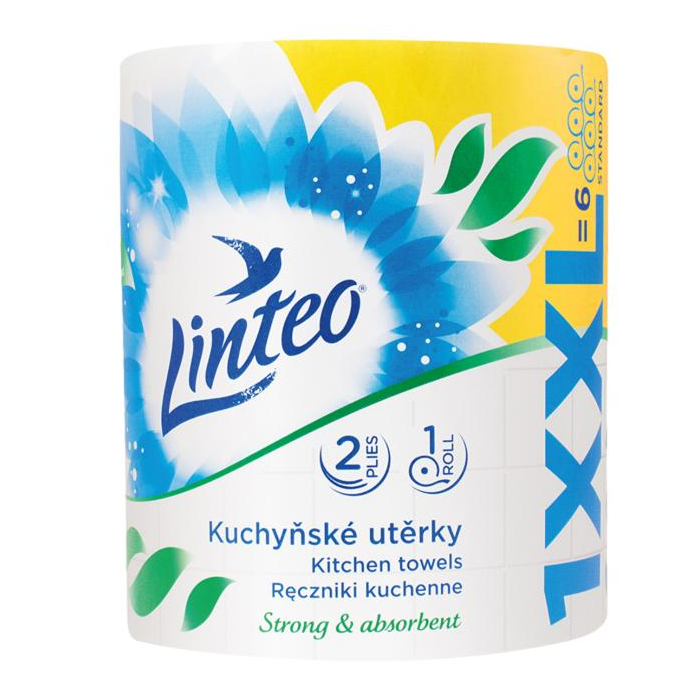 Kuchynské utierky 2-vrstvové Linteo XX, 100% celulóza, biele 60 m
